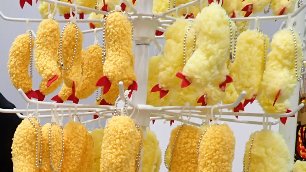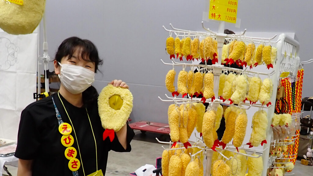 また、会場内でひと際目立っていたのは、大小さまざまな“エビフライ”を並べた「海老雅(えびまさ)」さんのブース。キーホルダーから抱き枕まで、かわいい色合いのエビフライが所狭しと並べられ、行き交う来場者の注目を集めていました。もともとエビフライが大好きでキーホルダーを作り始めたという海老雅さんは、友人からのリクエストに応えるうちにぬいぐるみや抱き枕など種類が増えていったのだとか。そのかわいらしさが評判を呼び、ネット販売だけでなく、全国各地の雑貨店で販売するように。この日も多くの方がブースに足を止め、エビフライを買い求めていました。